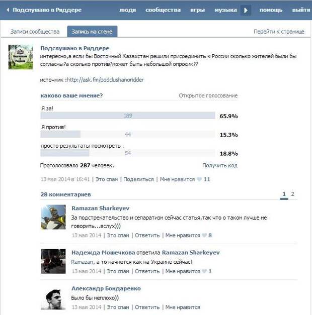 Примеров русофобии в Казахстане более, чем достаточно. В 2014 году жительница Семиречья Татьяна Шевцова-Валова судом города Алма-Ата приговорена к четырем годам условно за сепаратистский пост в Фейсбуке. А недавно произошёл вообще дикий случай: суд Восточно-Казахстанской области приговорил двадцатишестилетнего жителя города Риддер Игоря Сычева к пяти реальным годам тюрьмы. Его преступление заключалось лишь в том, что он разместил опрос в социальной сети Вконтакте — «за» или «против» вступления Восточного Казахстана (русский регион Рудный Алтай) в состав РФ.
